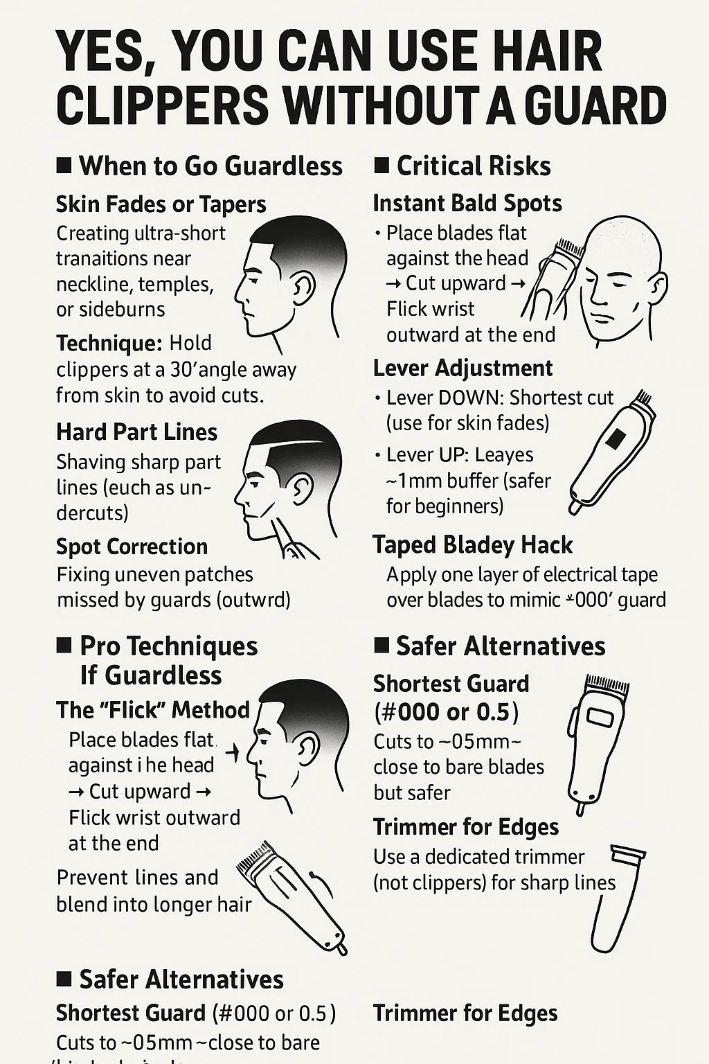 ใช่คุณสามารถใช้ ปัตตาเลี่ยนผม โดยไม่มียามแต่ต้องใช้ความระมัดระวังและเทคนิคเฉพาะ นี่คือสิ่งที่คุณต้องรู้: