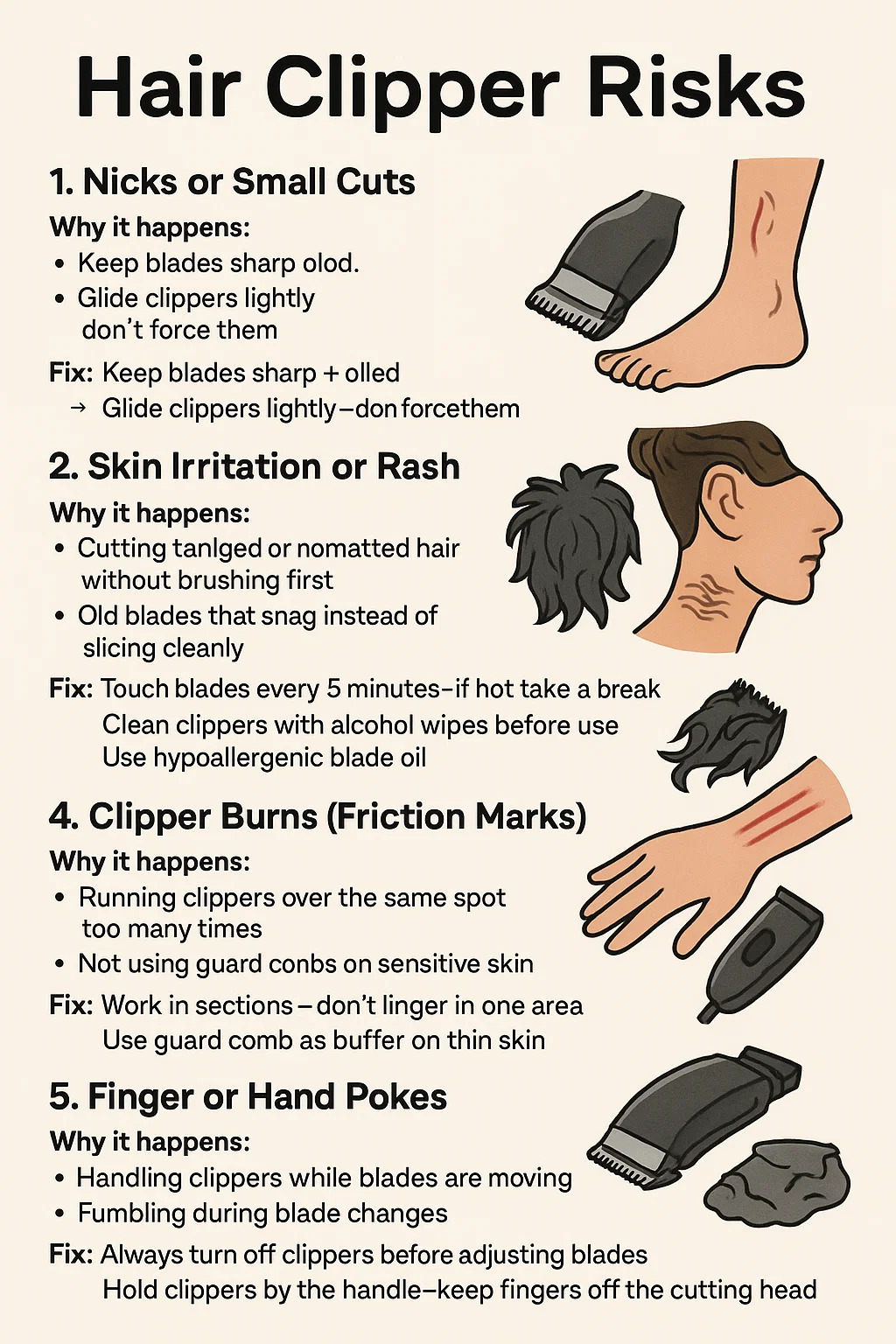 ใช่ ใช้ก ปัตตาเลี่ยนผม อาจนำไปสู่การบาดเจ็บเล็กน้อยหรือไม่สบายได้หากไม่จัดการอย่างระมัดระวัง ต่อไปนี้คือรายละเอียดที่ชัดเจนของความเสี่ยงทั่วไปและวิธีหลีกเลี่ยง: